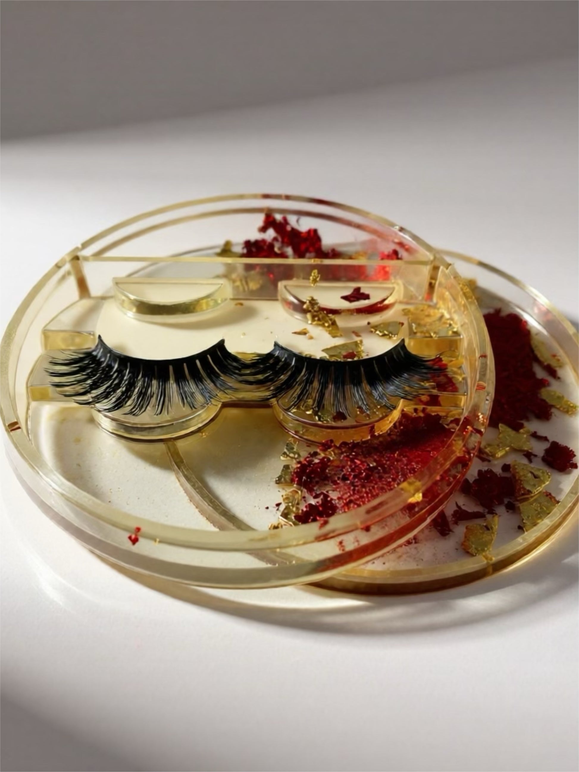 Our lashes are packed with a beautiful handmade resin lash container, spooly, and a stainless steel lash applicator tool.