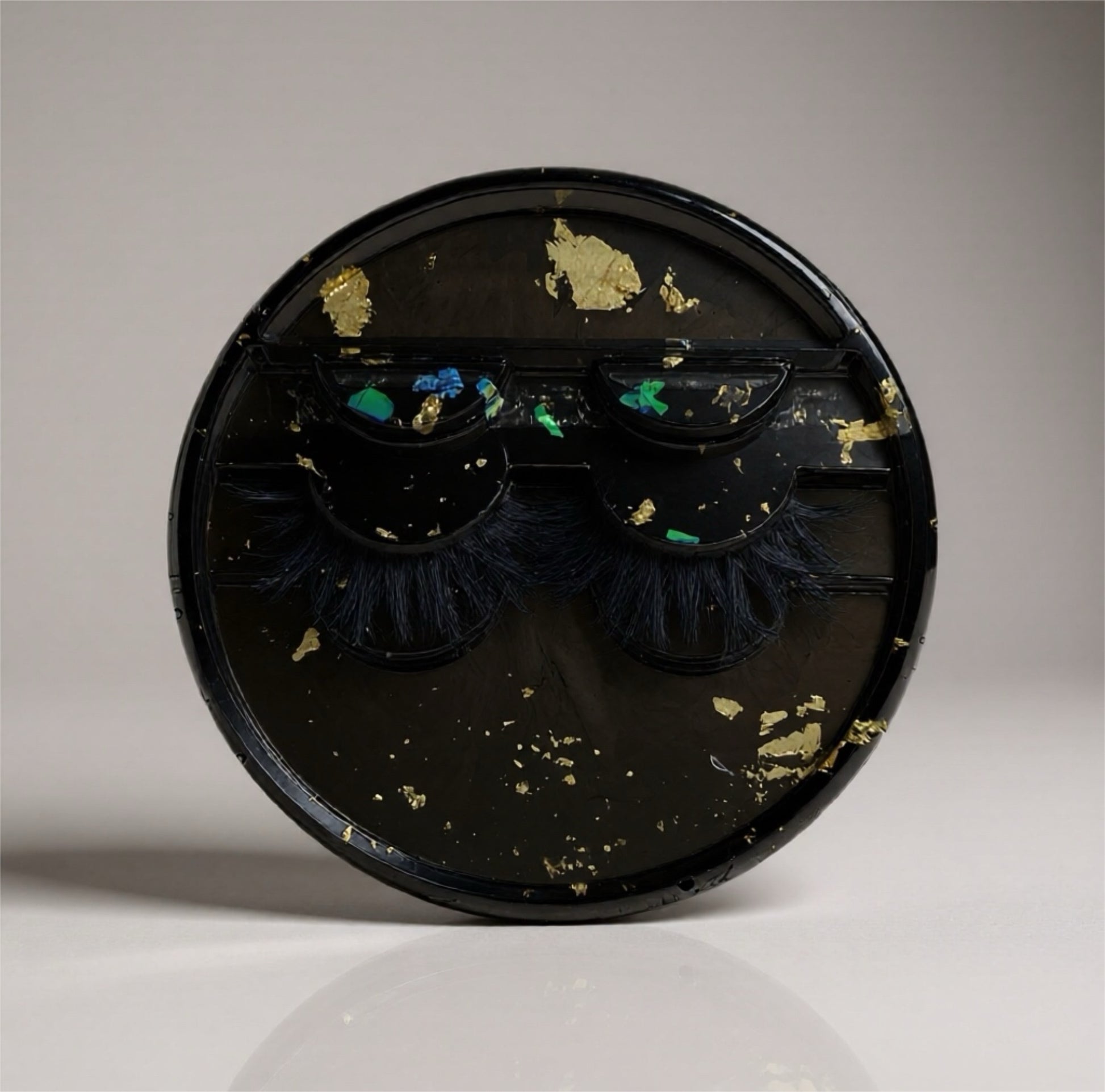 Our lashes are packed with a beautiful handmade resin lash container, spooly, and a stainless steel lash applicator tool.